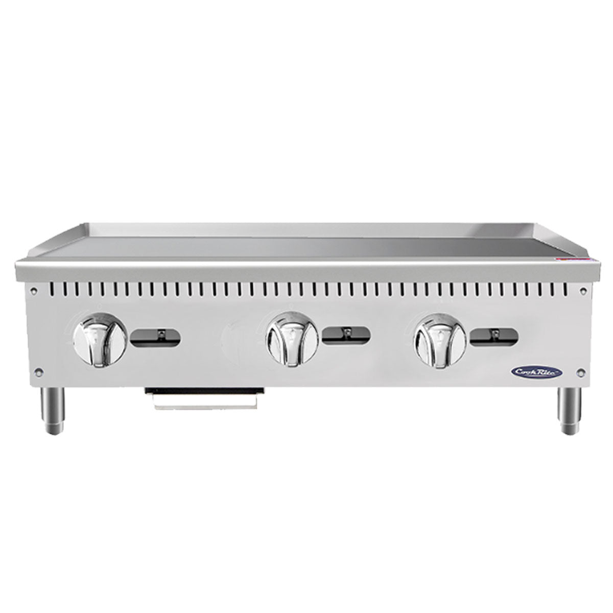 The ATMG-36 is a 36-inch manual griddle designed for professional kitchens requiring precise temperature control and reliable performance. Its spacious cooking surface allows for versatile food preparation, while manual controls provide straightforward operation and consistent heat distribution. Built with durable materials, this griddle ensures long-lasting use and easy maintenance, making it an essential tool for chefs seeking efficiency and quality in their cooking equipment.